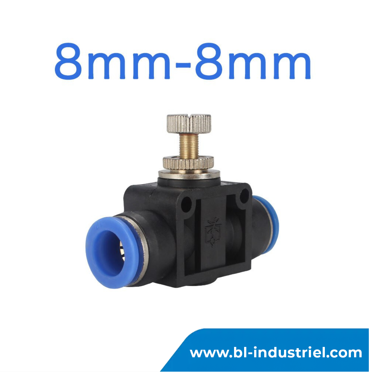Un régulateur de débit d’air pneumatique, également appelé contrôleur de flux ou limiteur de débit, est un composant essentiel dans les systèmes pneumatiques. Il permet de contrôler avec précision la vitesse ou le débit de l’air comprimé dans un vérin ou un autre actionneur pneumatique. En régulant le débit d’air, il influence directement la vitesse des mouvements pneumatiques, permettant un contrôle précis et une adaptation aux exigences spécifiques de chaque application.